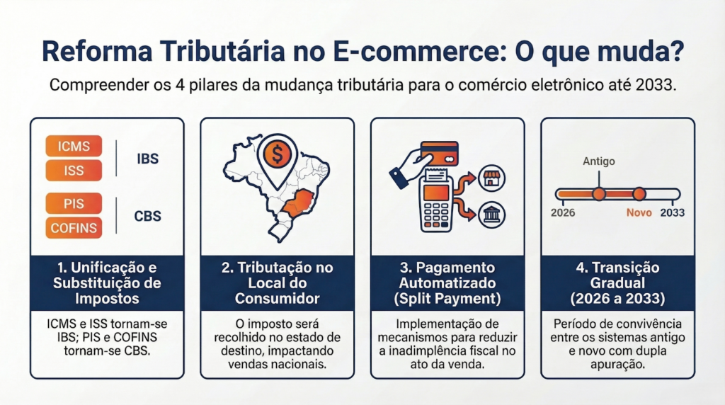 A aplicação da Reforma Tributária no e-commerce acontece de forma gradual, com transição prevista entre 2026 e 2033. Na prática, as empresas precisarão se adaptar a novos processos.